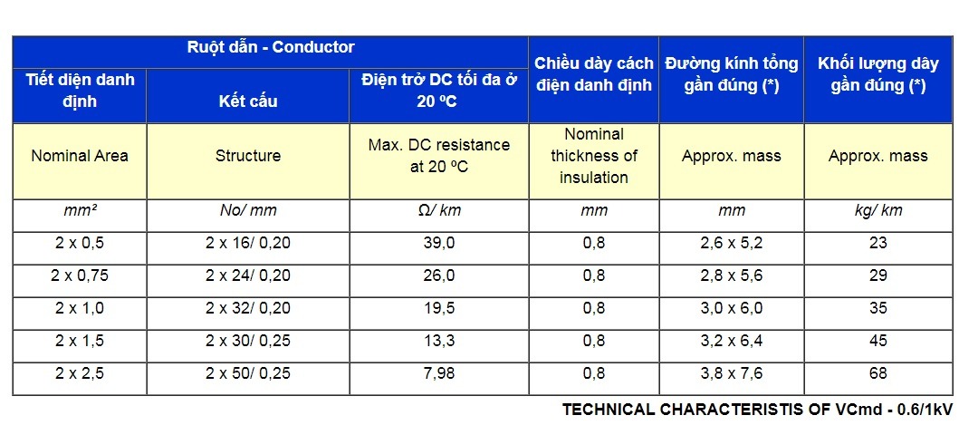 - – Dây điện mềm 2 ruột đồng (Cấp 5), cách điện PVC sử dụng cho các thiết bị điện dân dụng.